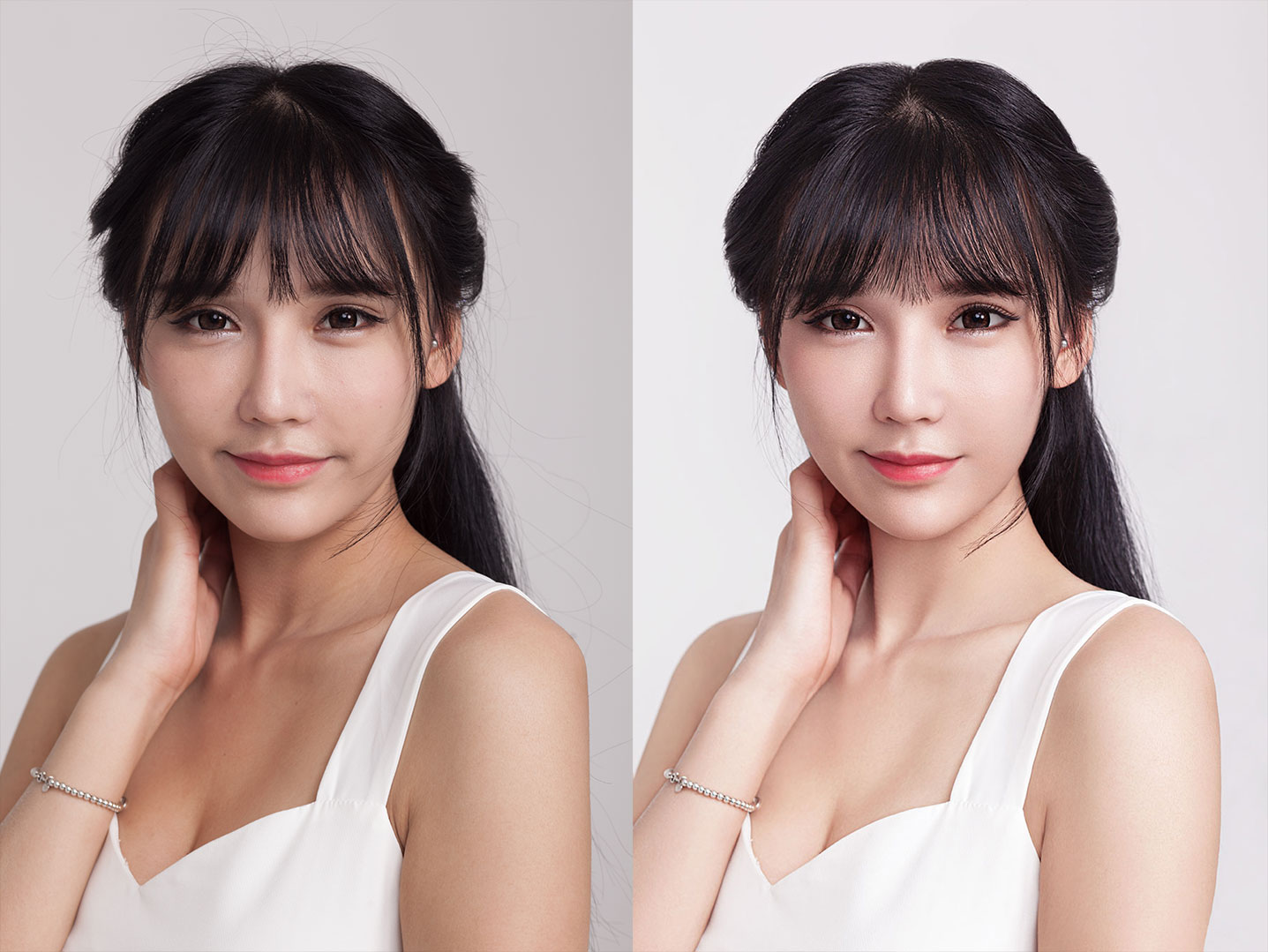 女子头部特写镜头精修调色练习案例,附原图和 PSD 分层文件