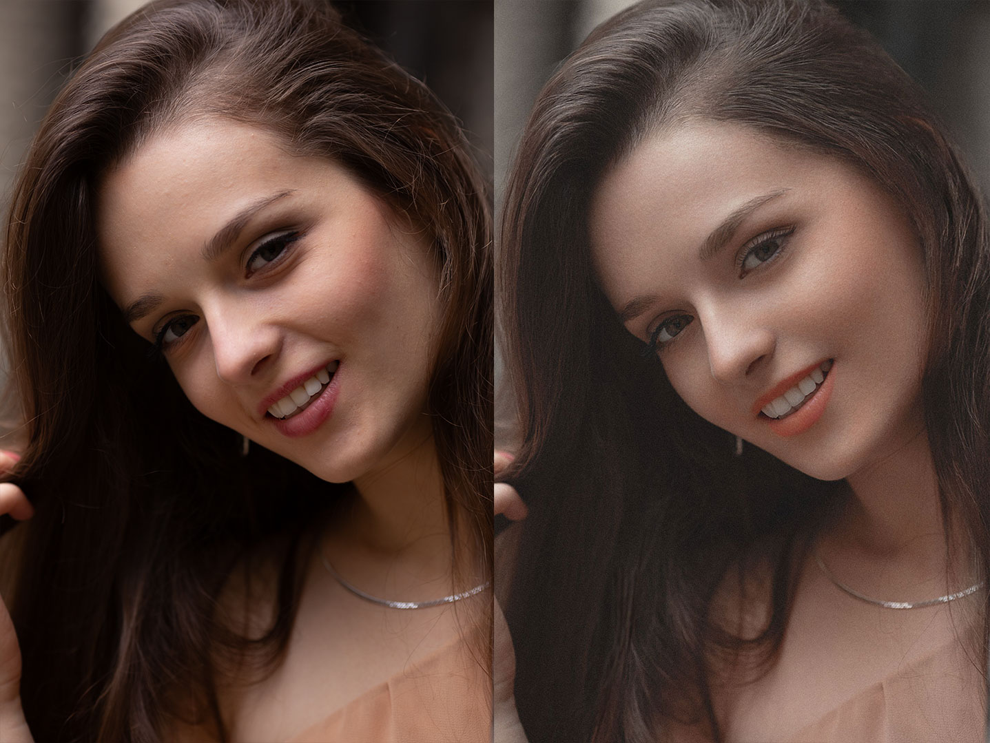 女子头部特写镜头精修调色练习案例,附原图和 PSD 分层文件